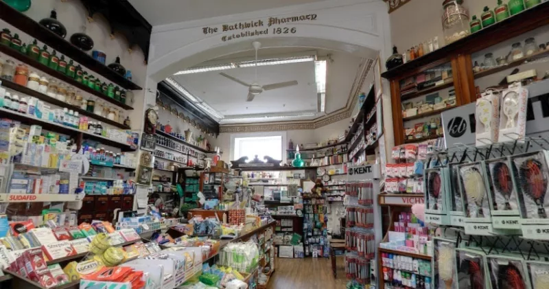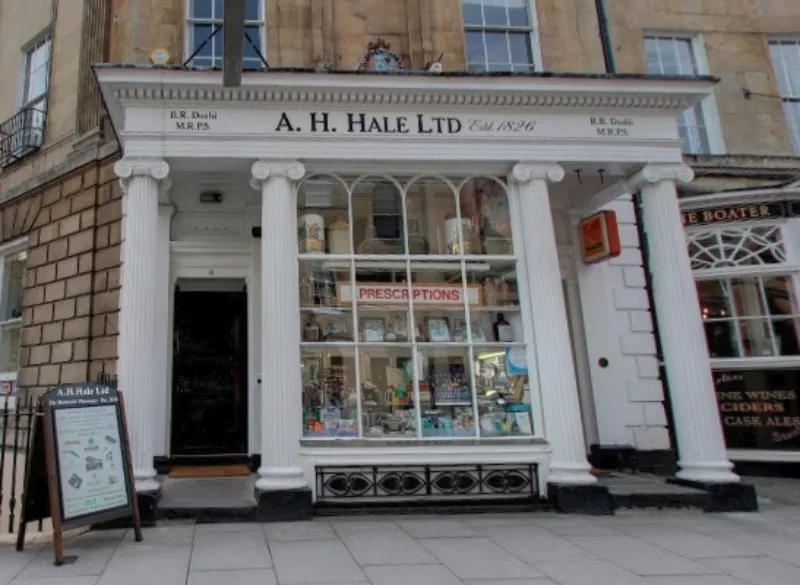 The Bathwick Pharmacy, also known as A.H.Hale Ltd, is considered to be one of the last remaining pharmacies with an interior dating back to 1826. Adorned with the coat of arms of Queen Charlotte above the premises the pharmacy boasts many other past famous patrons as well as a historic royal warrant. Today the pharmcy stills upholds the values of good old fashioned service but is up to date in every other manner, stocking a tremendous range of products not often seen on the high street.